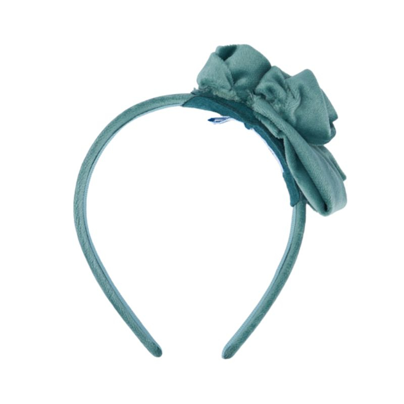 Pe o parte a bentitei sunt prinsi doi trandafiri din acelasi material (catifea) ce ii confera feminitate si eleganta.Culoare: verde mentaMaterial: 100% PoliesterIntretinere:Nu se spala. Se curata cu o perie sau carpa moale.