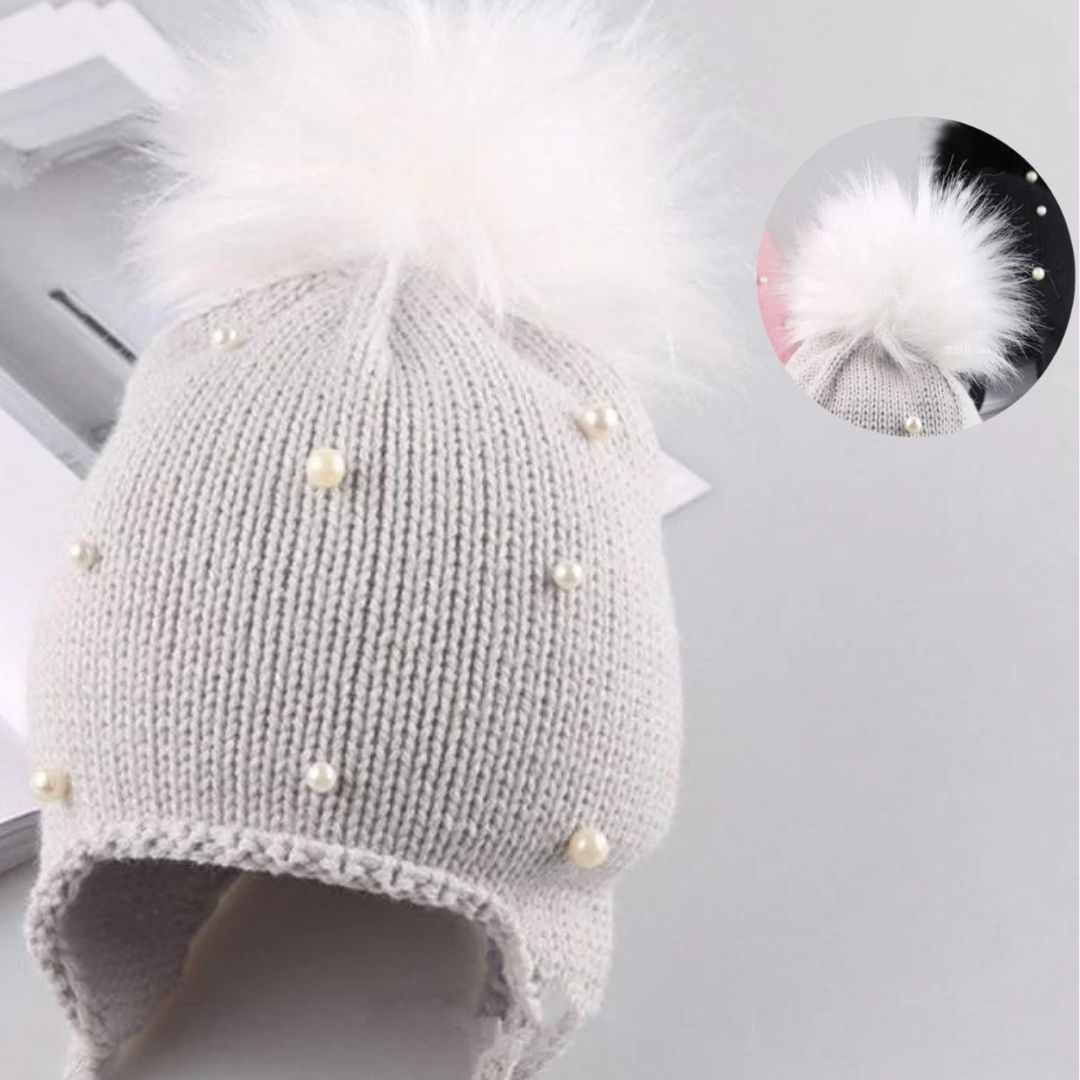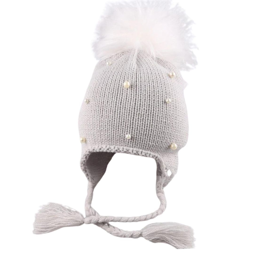 Caciulita gri cu perlute - DroolCaciula tricotata cu perlute este moale la atingere si prevazuta cu snururi - ce pot fi legate sau nu, caciula fiind deosebit de călduroasa.Culoare: griMarime: masura este universala, pentru copii intre 1 an si 2 ani cu o circumferinta de 40-48cmMaterial: tricotIntretinere: Spalare: automata / manuala, cu detergent pentru rufe delicate