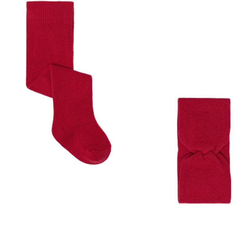 Dresuri si bentita pentru nou-nascuti - Rosu - Mayoral DresuriDresuri cu talie elastica pentru o mai buna ajustare.Este un accesoriu usor de combinat si versatil, fiind ideal pentru completarea oricarui look. Materialul este moale din bumbac elastic, avand model cu dungi.Material: 60% Bumbac 20% Poliamidă 12% Poliester 5% Fibrele metalice 3% ElastanBentitaBentita asortata cu dresul. Un accesoriu delicat ce poate insoti orice tinuta.