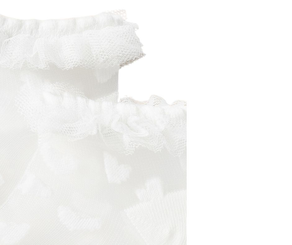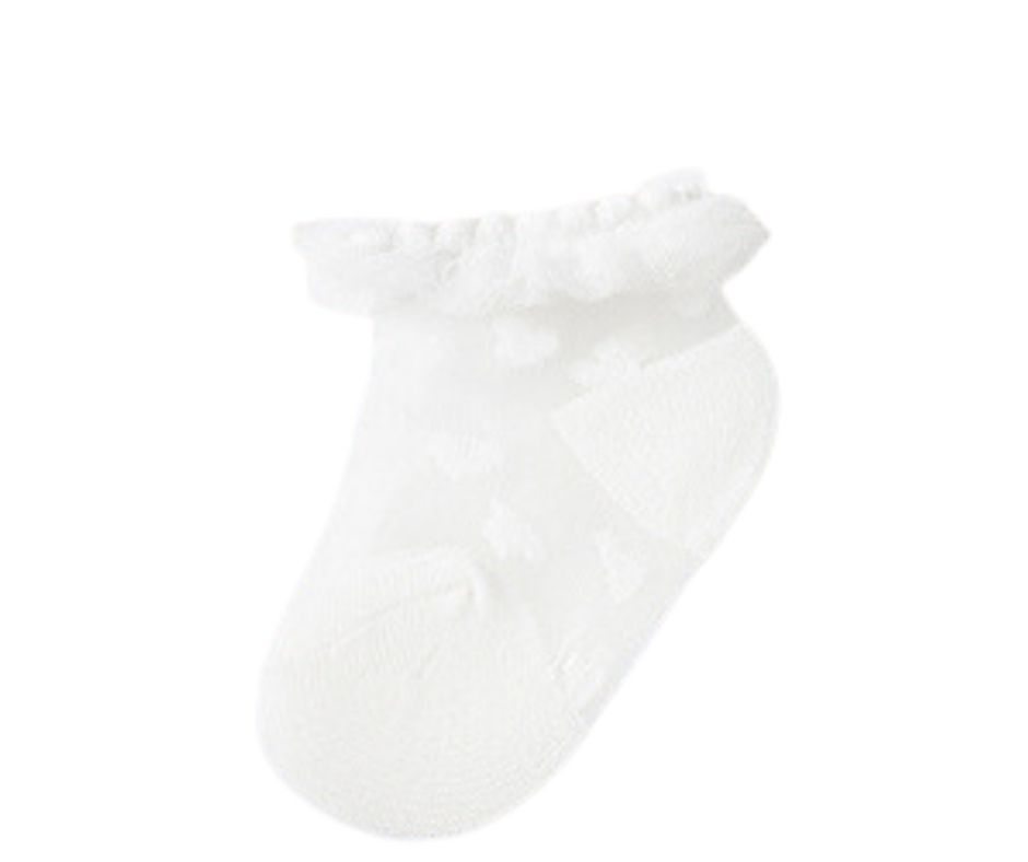 Sosete elegante plumeti - Off-whiteEste un accesoriu usor de combinat si versatil, fiind ideal pentru completarea oricarui look.Materialul este moale din bumbac elastic, avand un design cu volanase si buline in relief.Material: 44% poliamida / 37% bumbac / 17% poliester / 2% elastan