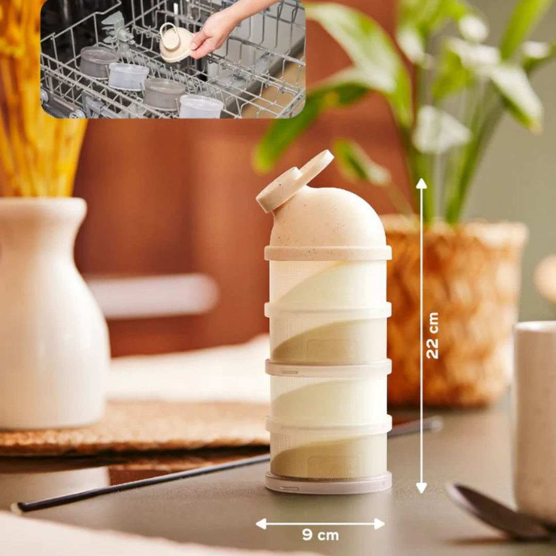 Capacitate mare: Fiecare compartiment poate depozita pana la 12 masuri de lapte praf, suficient pentru biberonul bebelusului de pana la 360 ml.