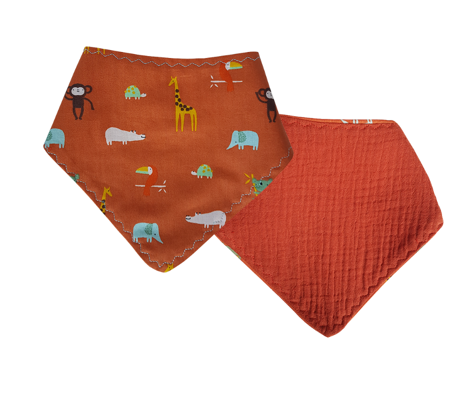 Baveta 2 fete - muselina/bumbac, CaramiziuFrumoase si practice, aceste bavete lucrate din materiale naturale, alese cu mare atentie, sunt accesorii absolut necesare in primele luni ale bebelusului.