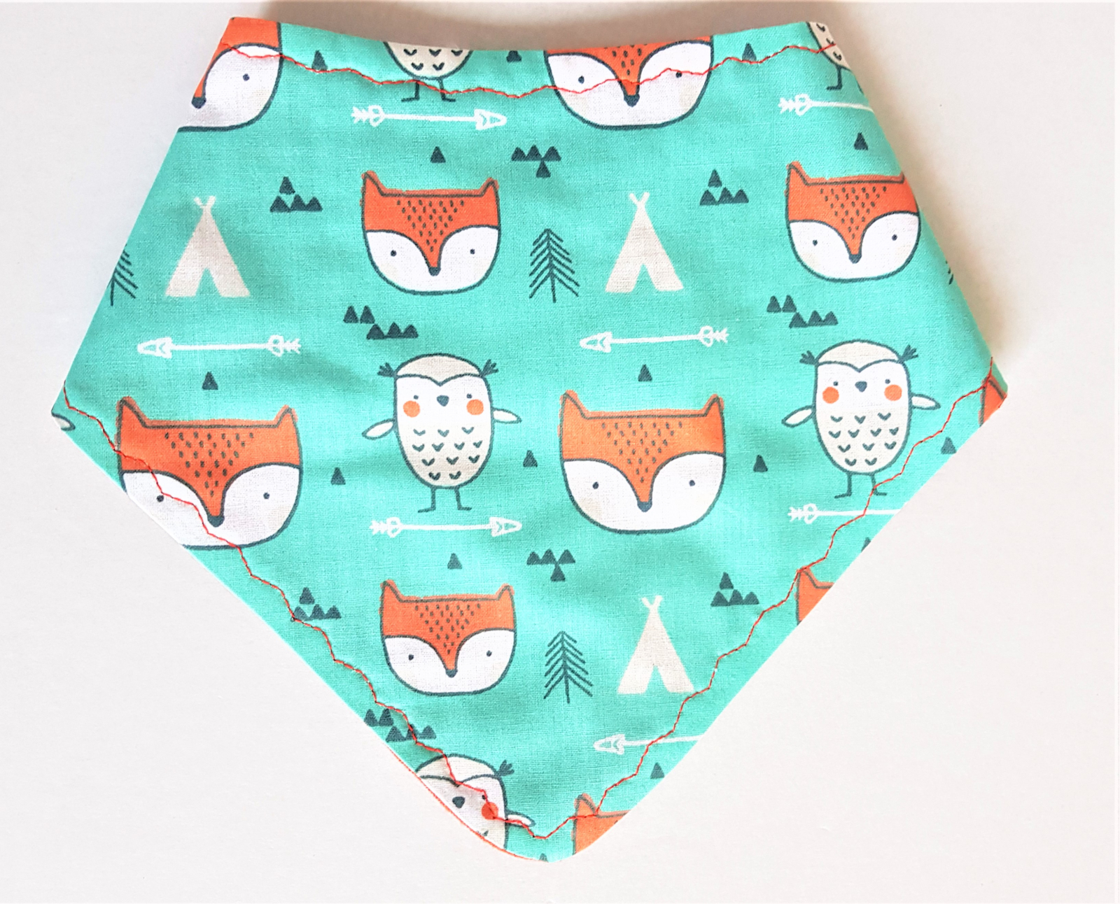 Baveta are doua fete: una de muselina uni si una din panza cu imprimeu.