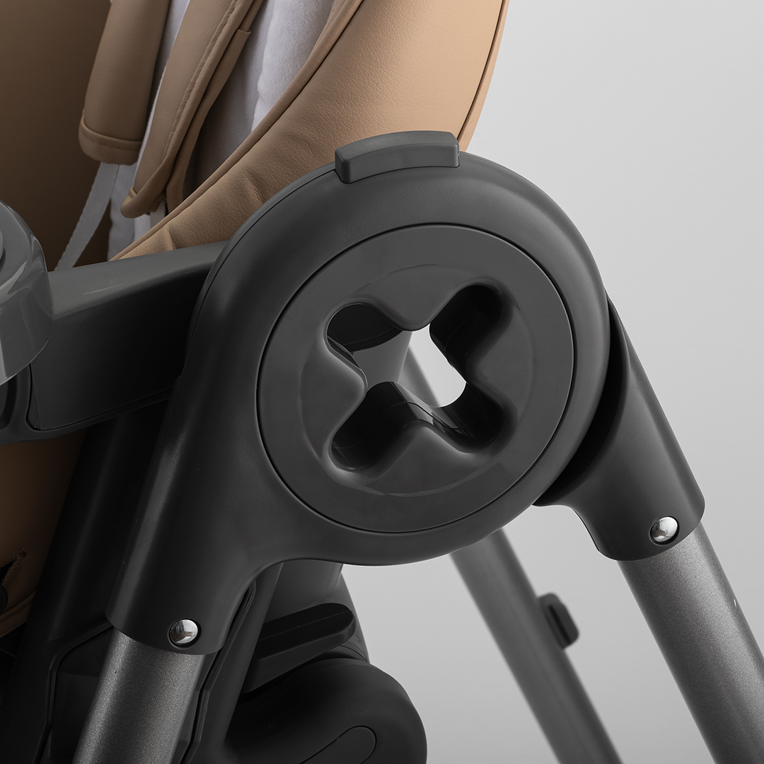 Culorile rafinate completeaza aspectul minimalist, in timp ce detaliile atent gandite, cum ar fi tavita usor de curatat, prevazuta cu un spatiu inegrat pentru canita bebelusului si structura compacta, asigura un design practic si estetic.