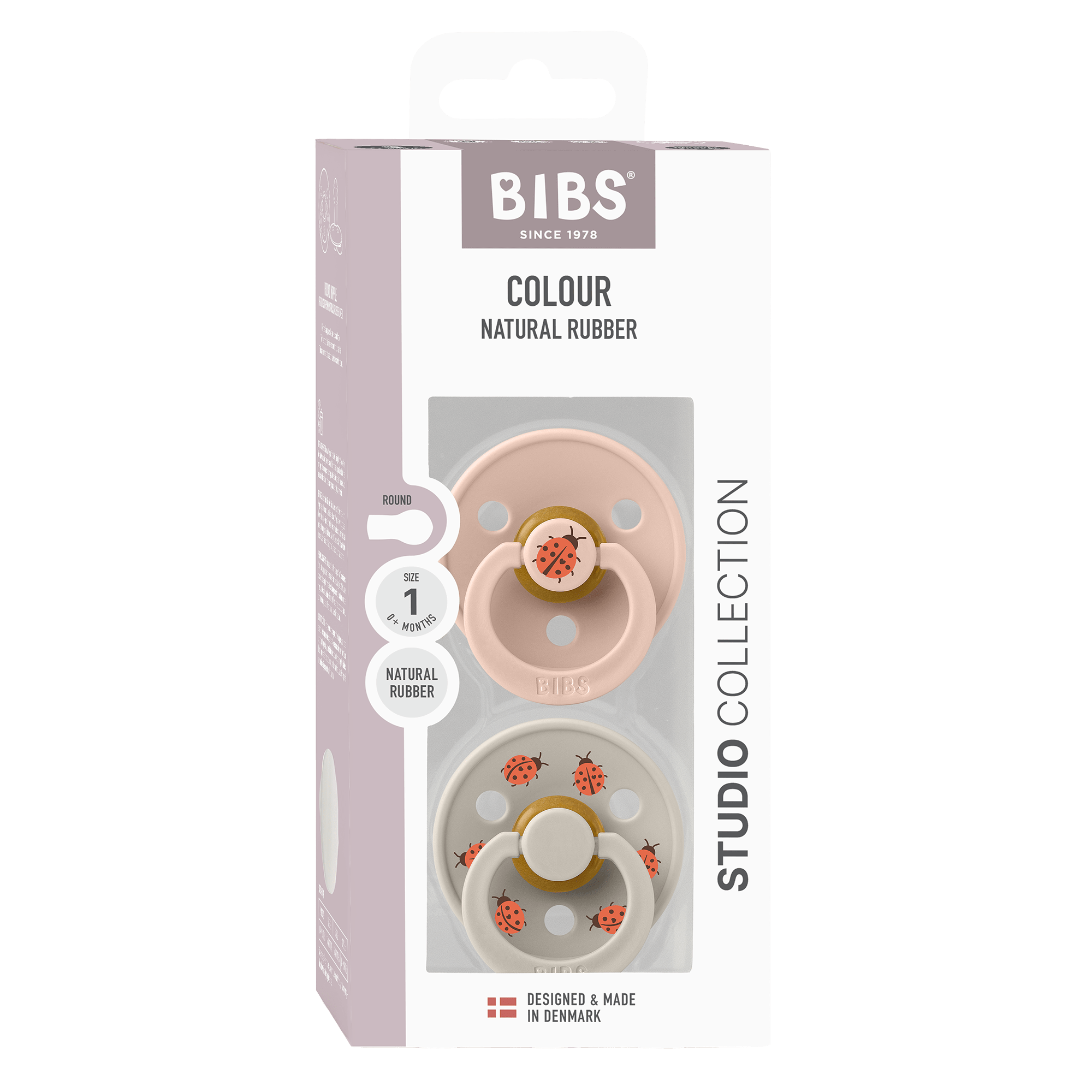 BIBS - Set 2 suzete Colour Studio Collection Ladybug Latex, tetina rotunda, 0 luni+-Blush Mix