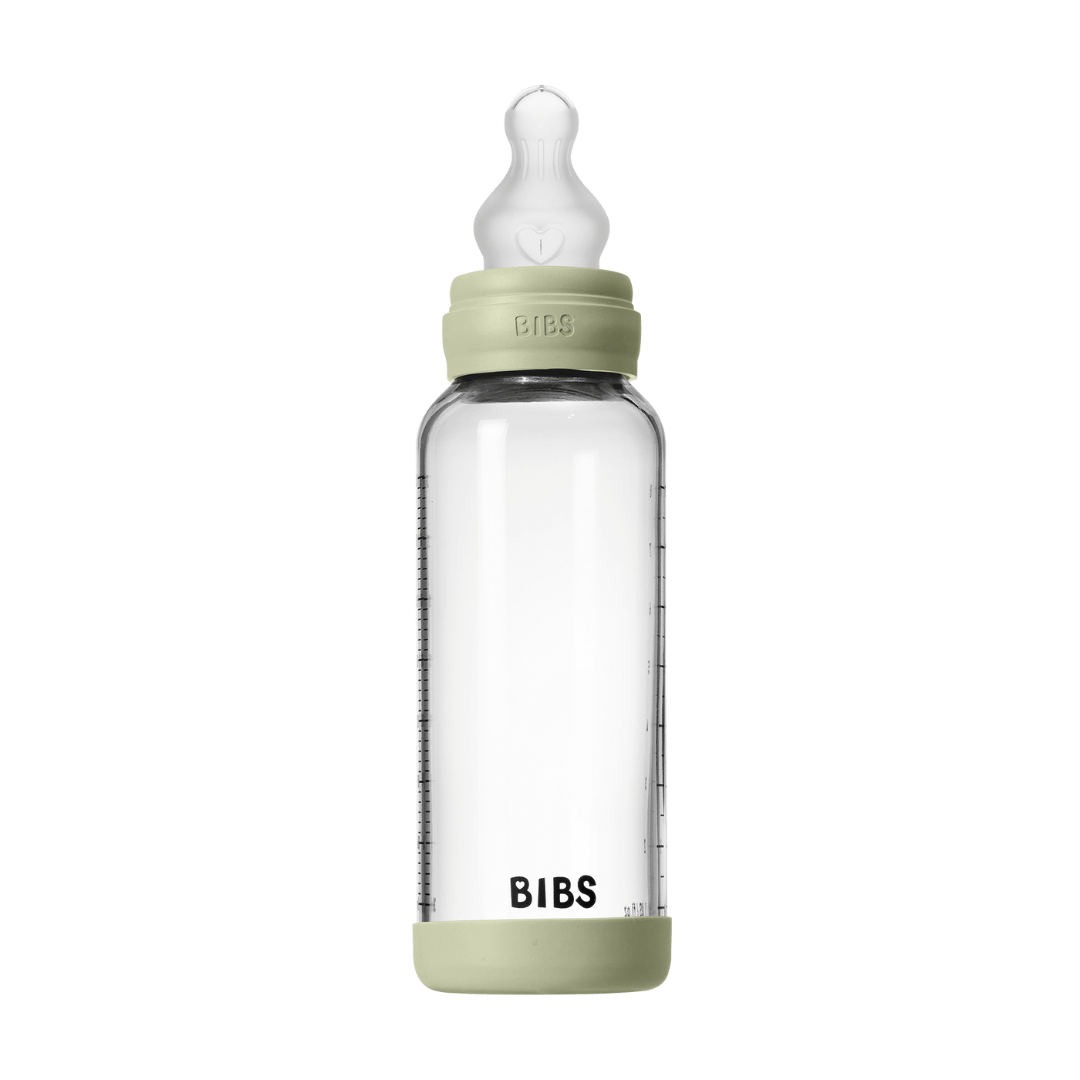- BIBS - Set complet biberon din sticla anticolici cu tetina din silicon, flux mediu, 240 ml, Sage