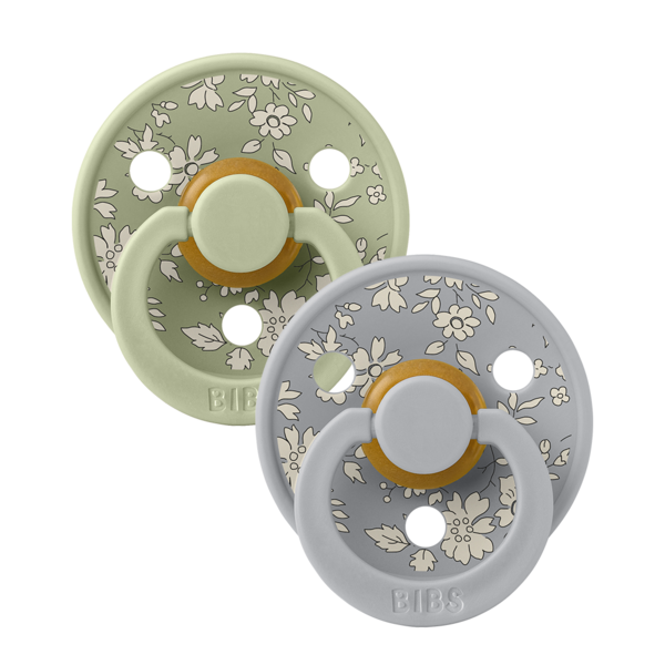 Pareri BIBS x LIBERTY - Set 2 suzete Colour Capel Latex, tetina rotunda, 6 luni+-Sage/Cloud