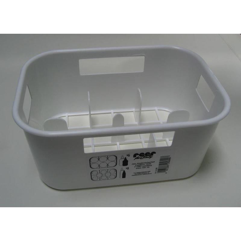 Suport biberoaneĀ Potrivit pentru 6 borcanase sau sticle cu gatul larg sau pentru 8 biberoane de marimi normale.- Disponibil in diverse culori moderne, transparente- Poate fi curatat in masina de spalat vase- Produs de inalta calitateCuloare: albDimensiuni: 24,5 cm (lungime) x 11 cm (latime) x 16,5 cm (inaltime) Fabricat in Germania