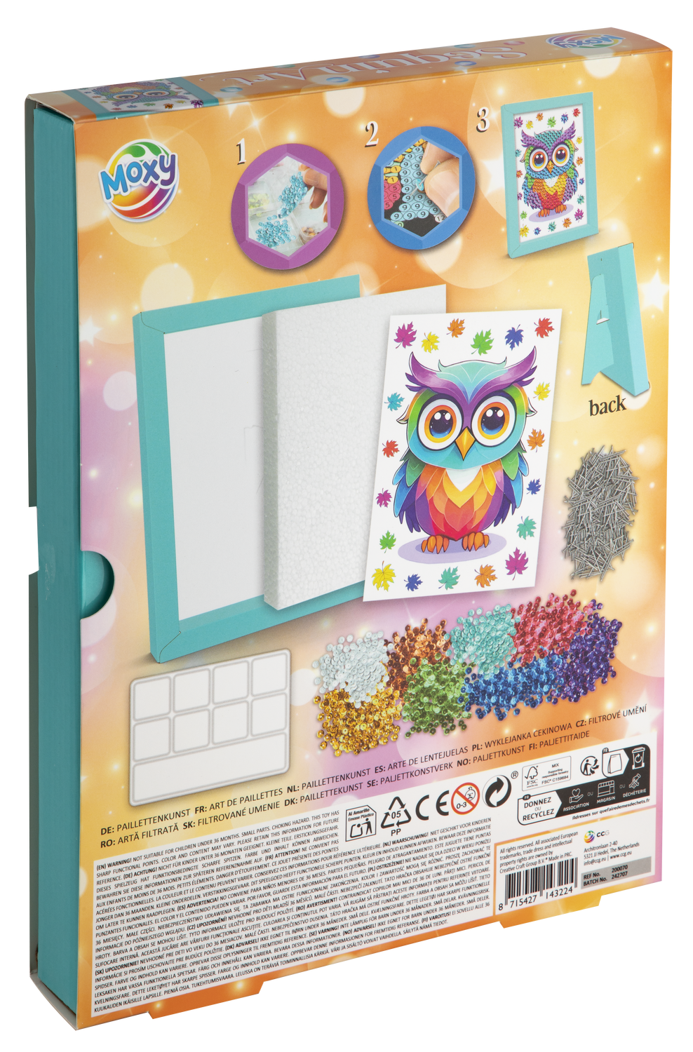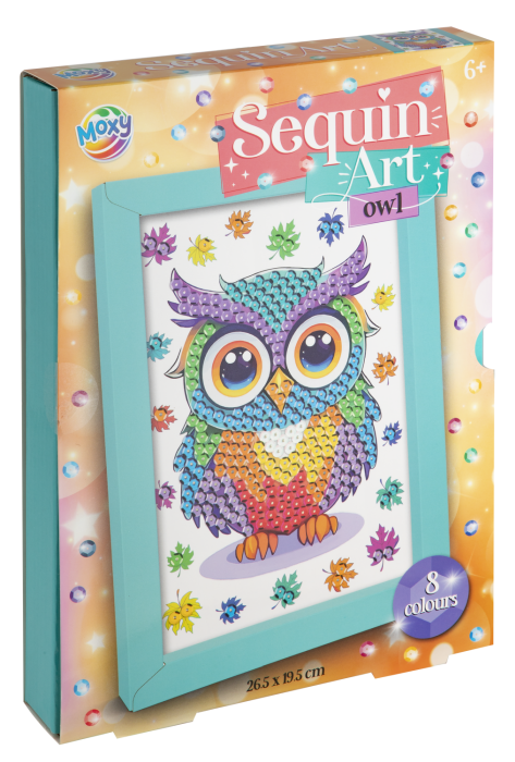 Imagineaza-ti un tablou fascinant, plin de stralucire, in care o bufnita eleganta este realizata din paiete sclipitoare.