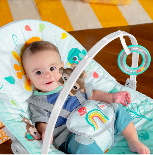 Viața alături de bebelusul tău este cât se poate de roz cu balansoarul Rosy Rainbow 2 în 1 de la Bright Starts.
