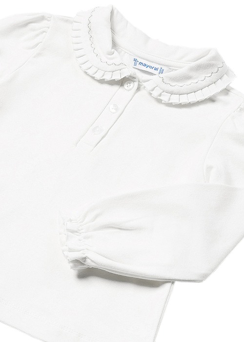 Polo basic bebe, fetita - Mayoral Tricoul cu maneca lunga are guler rotund,cu un volanas scurt si fin aplicat.Maneca incretita si deschidere cu trei nastuti in fata