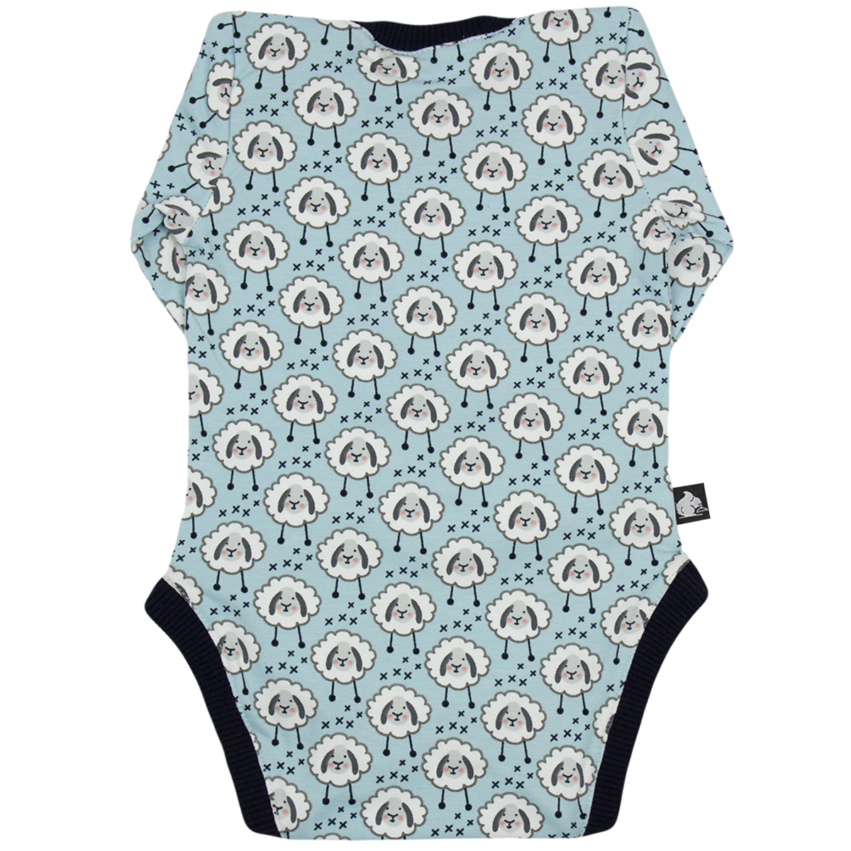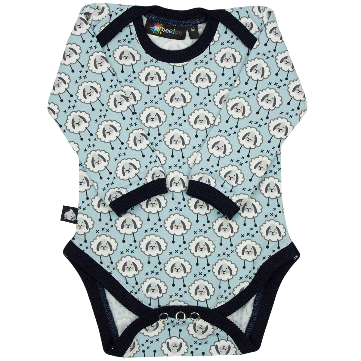 Body-ul pentru bebelusi este fabricat din bumbac organic avand pe margini o banda foarte putin elastica pentru a-i conferi stabilitate. Se incheie in partea de jos cu trei capse. Practic, moale, organic. Pastel cu imprimeu haios - oite.