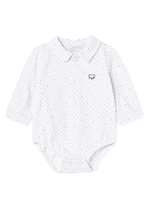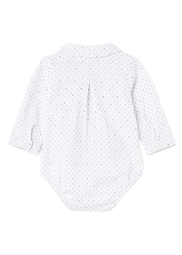 Body camasa ECOFRIENDS - Alb Body-ul camasa are maneci lungi si un guler tip camasa.Inchiderea se face cu 4 nasturi pe fata si 3 capse in partea de jos, pentru o imbracare usoara.Material: 100% bumbacCuloare: albImprimeu: picateleIntretinere: