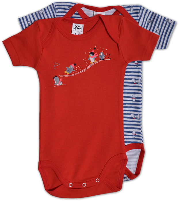 Set 2 body uri cu maneca scurta alb/rosu Pinguini