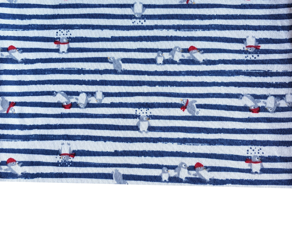 Imprimeu: dungi albastre si pinguini gri / pinguini gri alunecand pe zapada