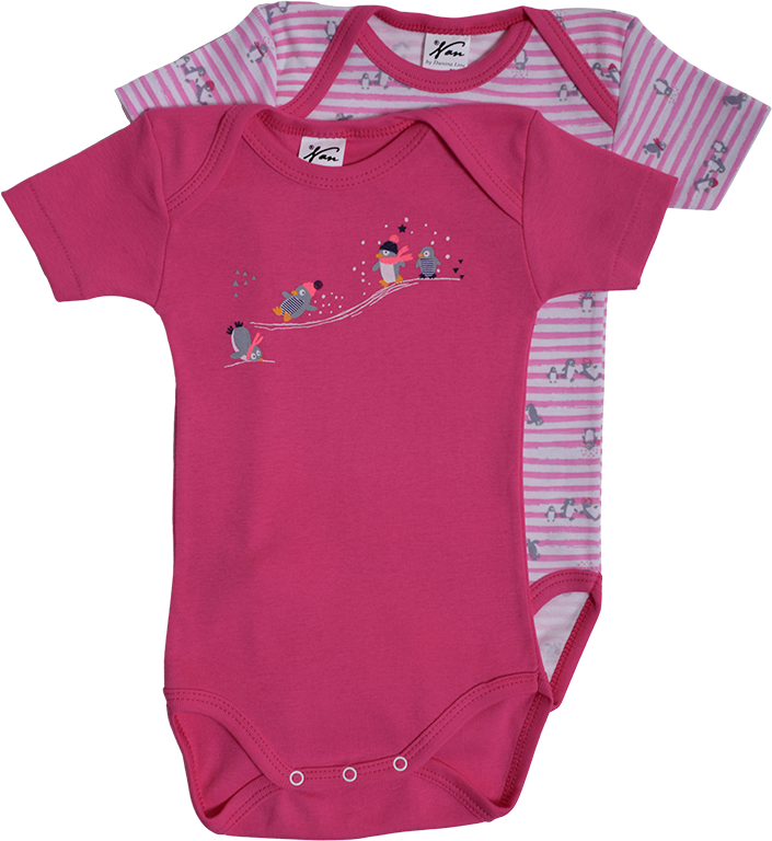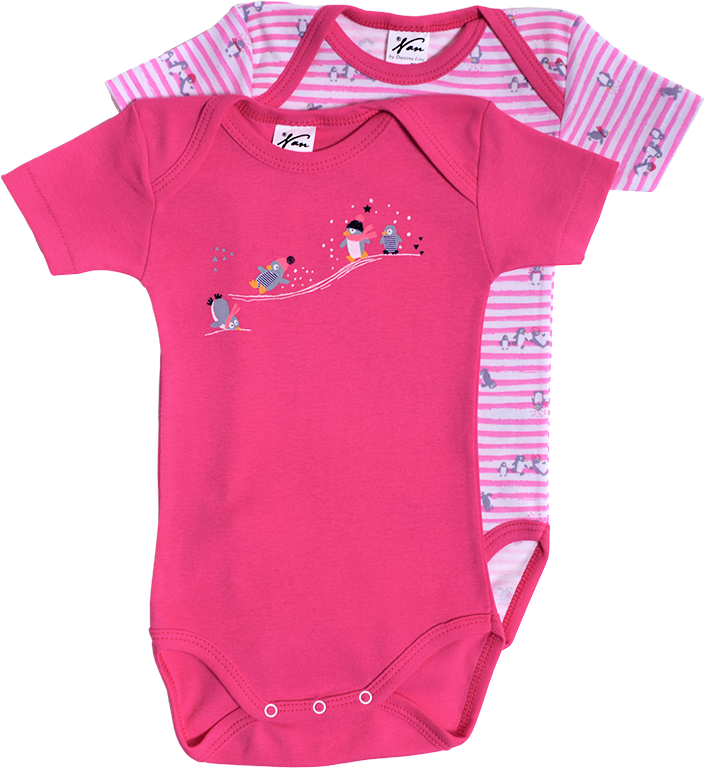 Set 2 body uri cu maneca scurta alb/roz Pinguini