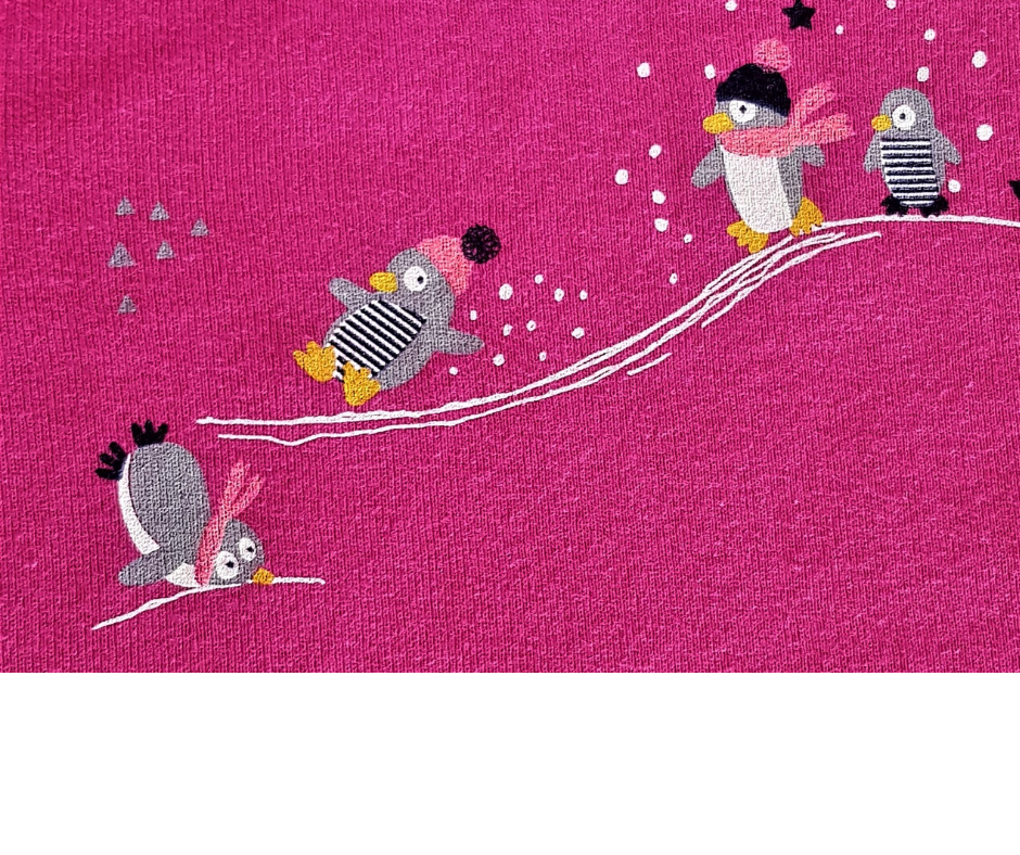 Imprimeu: dungi albastre si pinguini gri / pinguini gri alunecand pe zapada