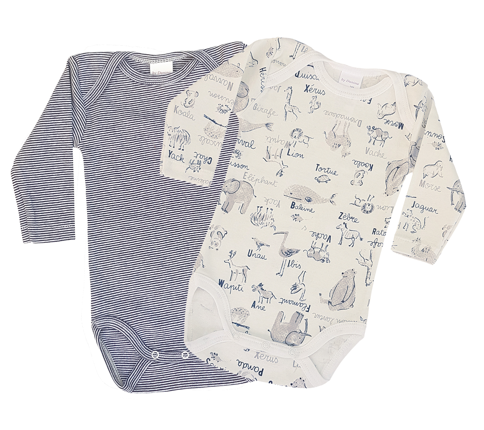 Set de 2 body cu maneca lunga Alb/Albastru-alb ZooBody-ul se prinde in partea de jos cu trei capse.Materialul este de buna calitate, rezistent la spalat, iar culorile se pastreaza in timp.