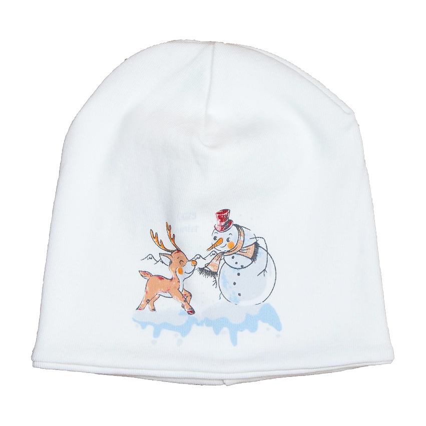 Fes dublu - Alb - Om de zapadaFesul este bun de luat si de purtat in casa sau la plimbare, in zilele cu si fara soare. Este practic, comod si perfect pentru a proteja bine, dar frumos, capusorul mic si dragastos.Material: 100% bumbacCuloare: albImprimeu: urs patinandIntretinere: