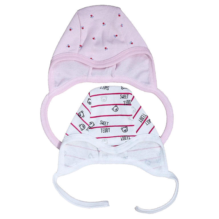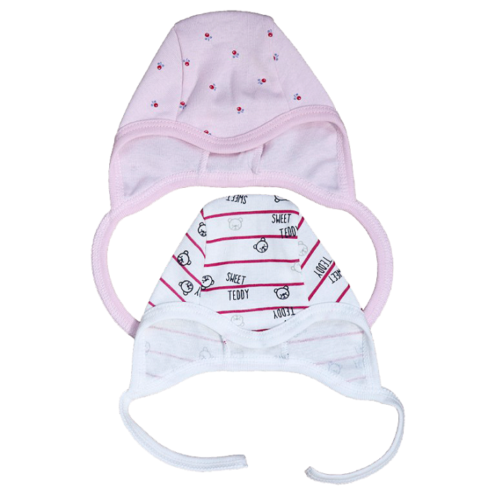 Set 2 caciulite cu siret - Floricele / UrsuletiAceste caciulite sunt clasice, ce se leaga sub barbie si acopera foarte bine capul bebelusului. Ele sunt bune de luat si de purtat in casa sau la plimbare, in zilele cu si fara soare. Sunt practice, comode si perfecte pentru a proteja bine, dar frumos, capusorul mic si dragastos.Material: 100% bumbacCuloare: roz / albImprimeu: florice / ursuletiIntretinere:
