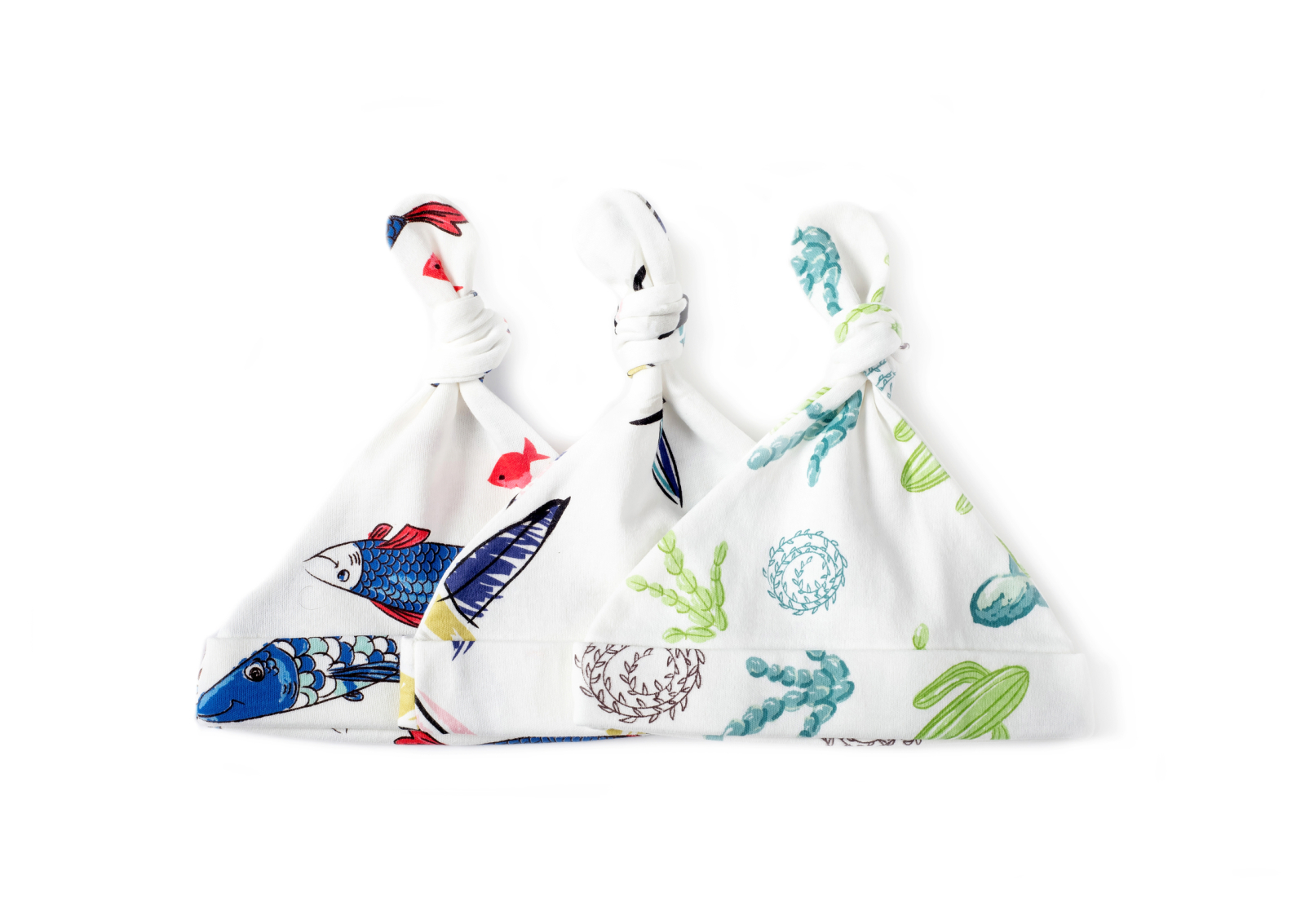 Set 3 caciulite Boy in SummerCaciulitele Boy in Summer sunt din bumbac foarte fin si au imprimeu viu colorat.