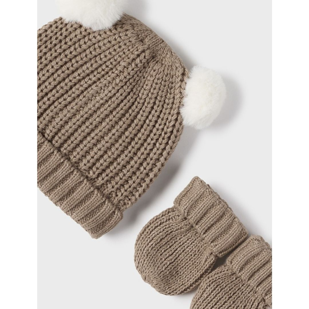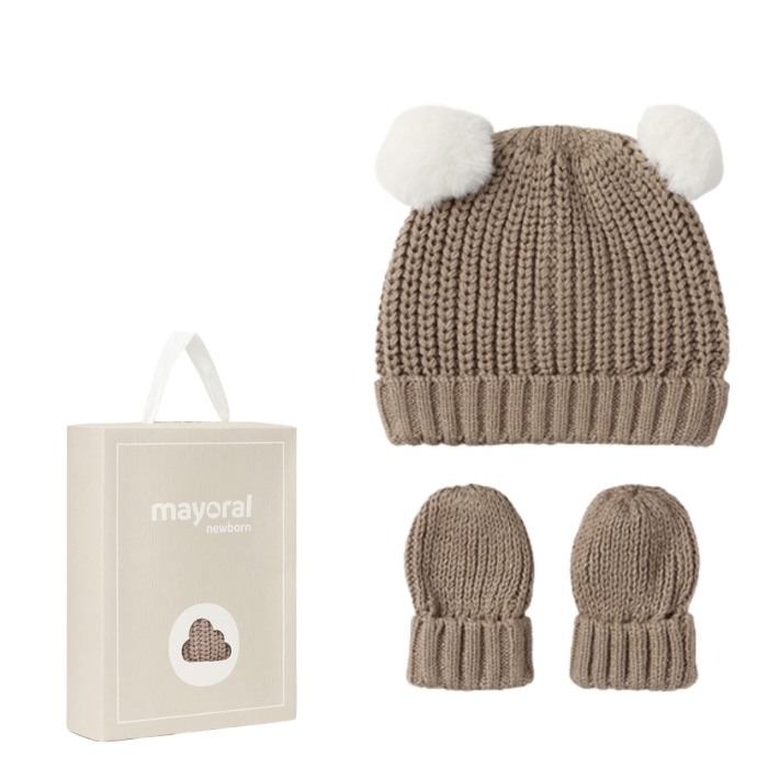 Set Tiramisu caciula si manusi pentru nou-nascut ECOFRIENDS- Mayoral Seturile vin ambalate elegant in cutie de carton Mayoral. Pot fi oricand oferite in dar la prima vizita sau daca doresti sa faci un cadou practic, util si cu stil.CaciulitaCaciulita tricotata are aceeasi nuanta si model ca si manusile.Doi ciucuri mici in laterale completeaza modelul.Material:Exterior- 57% Bumbac 38% Fibre acrilice 5% PoliesterManusiManusi tricotate fara degete cu acelasi model al caciulii.Material: 60% Bumbac 40% Fibre acriliceCuloare: TiramisuIntretinere: Spalare: automata / manuala, cu detergent pentru rufe delicate