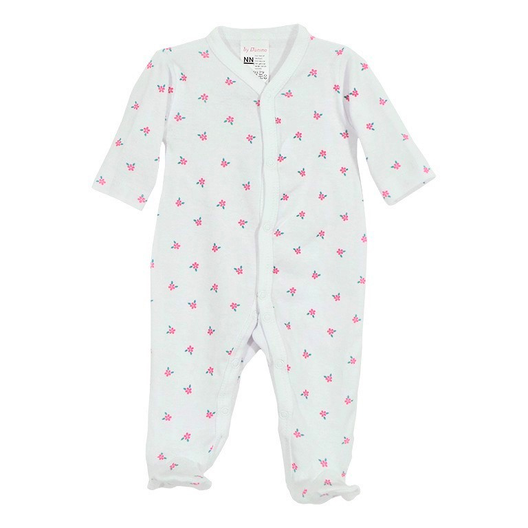 Salopeta maneca lunga - Floricele roz - By Danina (cod produs: 251411L) Se inchide cu capse pe partea din fata a salopetei, inclusiv pe piciorus si are o croiala larga pentru a fi imbracata usor.