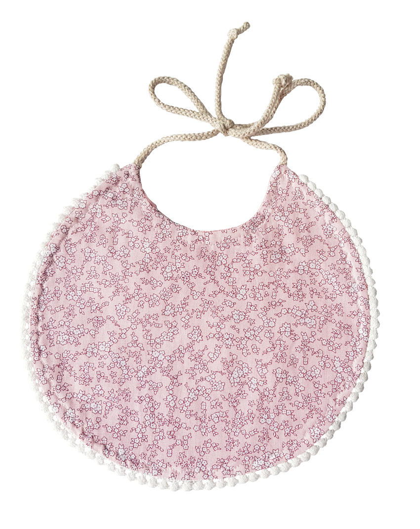 Baveta are doua fete: una din panza cu floricele si una din in uni, iar marginea este incadrata de o dantela fina de bumbac.