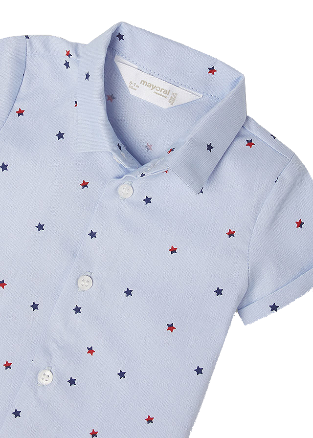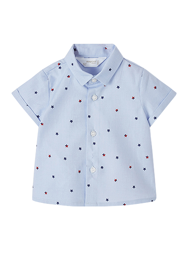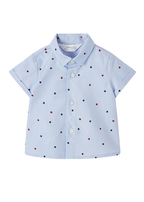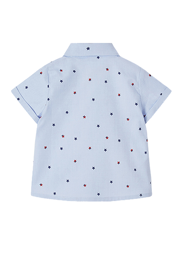 Camasa maneca scurta - SteluteCamasa cu maneca scurta are un guler clasic, iar inchiderea camasii se face cu nasturi, pe partea din fata.Tesatura din popelin este durabila si usor de ingrijit.Material: 100% bumbac