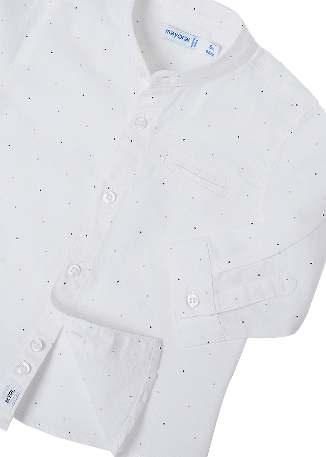 Camasa tip tunica cu maneca lunga - AlbCamasa cu maneca lunga, are mansete cu nasturi si un guler tip tunica.Inchiderea camasii se face cu nasturi, pe partea din fata. Modelul face parte din colectia de articole de imbracaminte clasice cu design basic, ideal pentru completarea oricarei tinute.