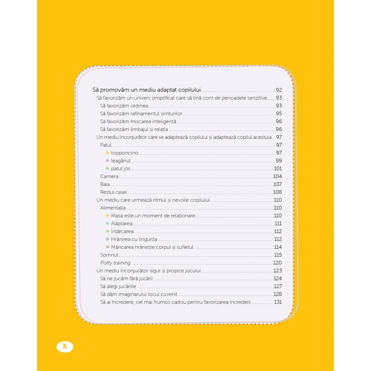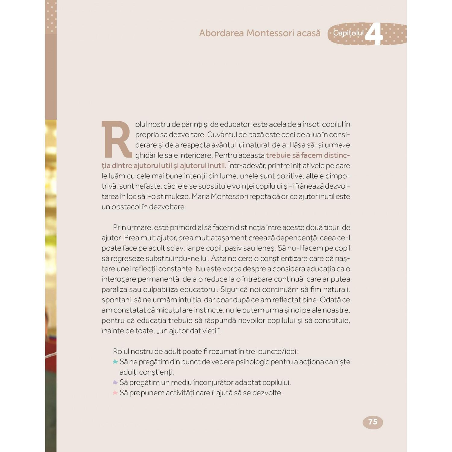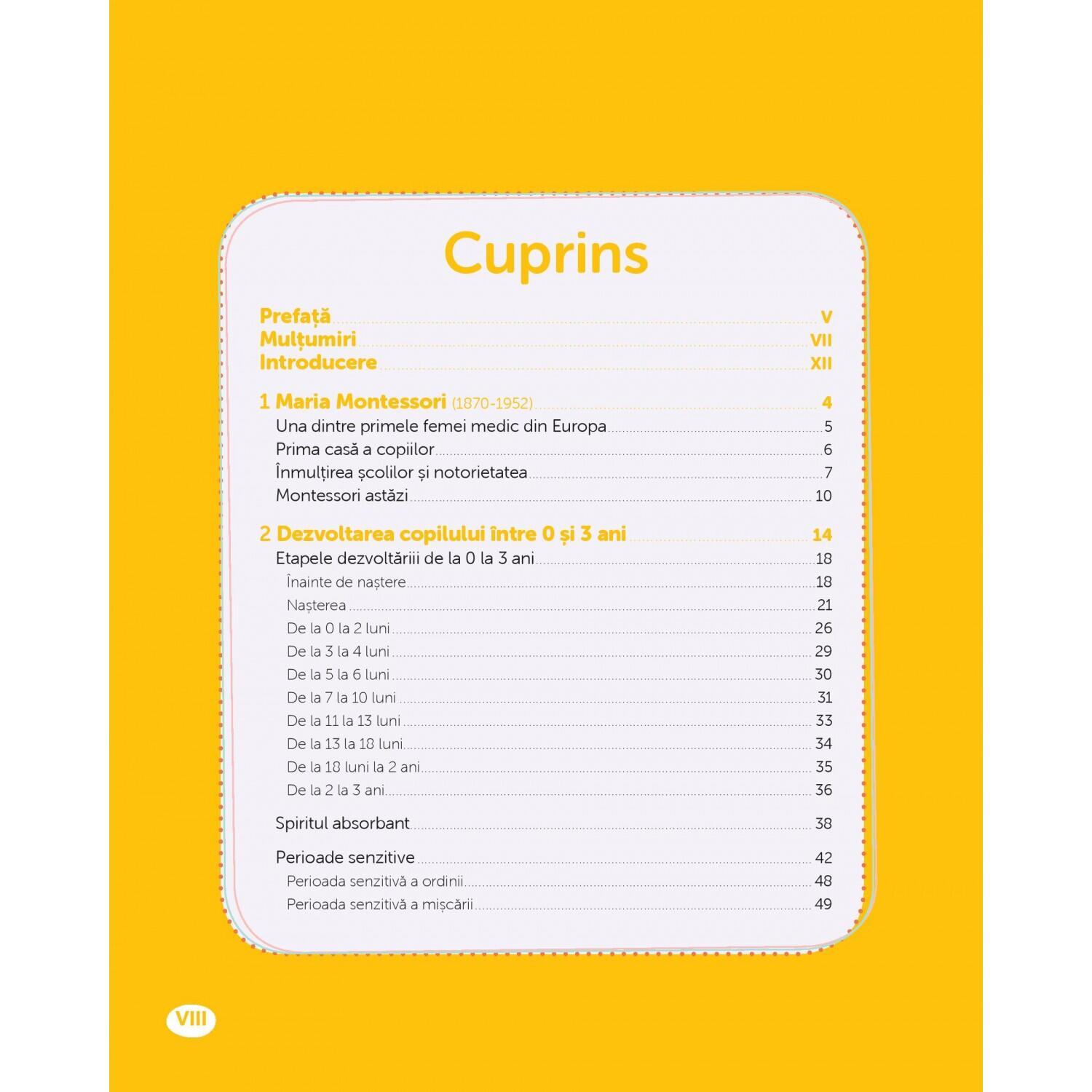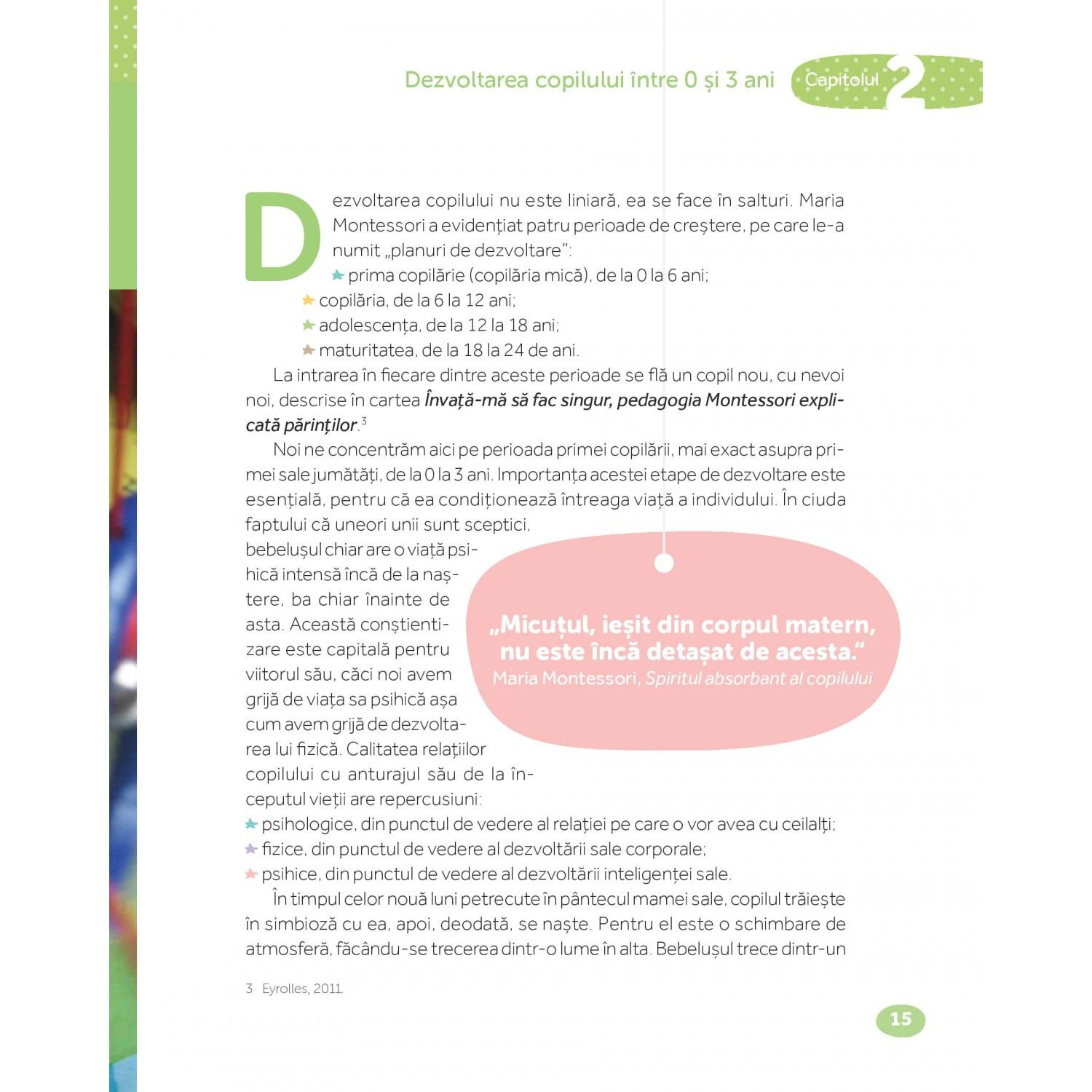 Această carte, bogat ilustrată, prezintă abordarea Montessori în perioada de la naștere și până la 3 ani într-un mod simplu și clar: