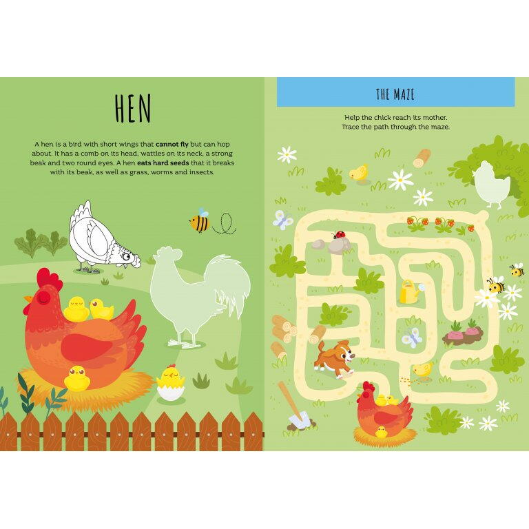 Plina de imagini atractive si exercitii stimulative, cartea le ofera celor mici ocazia de a descoperi viata la ferma intr-un mod educativ si distractiv