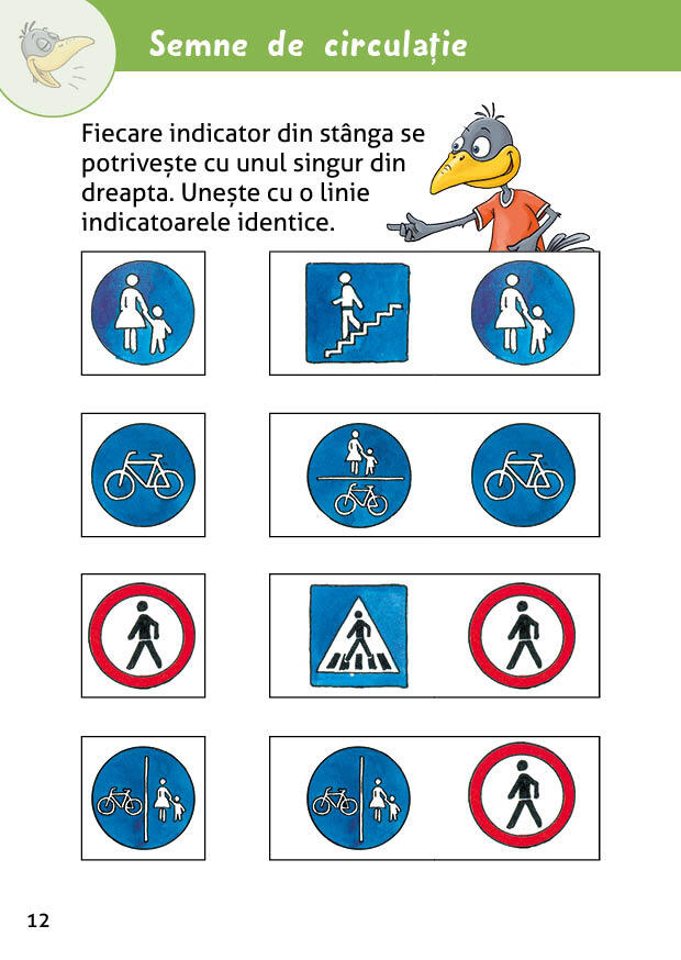 Cartea contine o serie de activitati: coloreaza, decupeaza imaginile si lipeste-le in ordine, realizeaza corespondenta intre semnele de circulatie si semnificatia lor si multe altele. Astfel, copiii se vor distra in timp ce invata cum sa circule in siguranta!