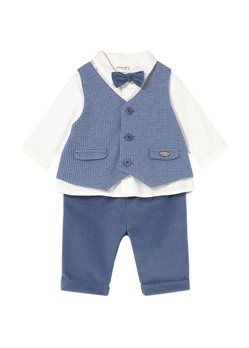 Set 3 piese - camasa + pantaloni + papionCompleul pentru baieti este format din: - camasa cu maneca lunga si vesta aplicata - pantaloni lungi