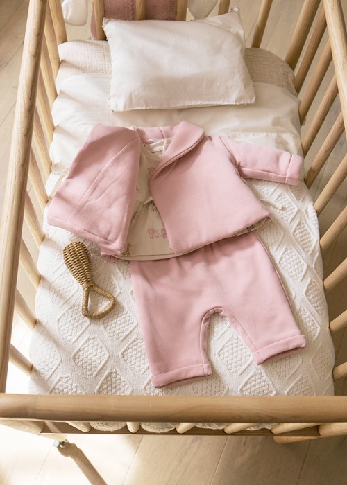 Setul este format din trei piese: - jacheta - bluza cu maneca lunga - pantaloni lungi