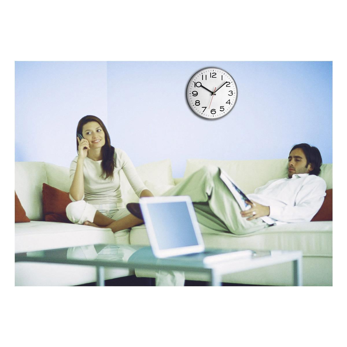 Ceas analog de perete, alb cu argintiu, cifre mari, TFA 60.3017