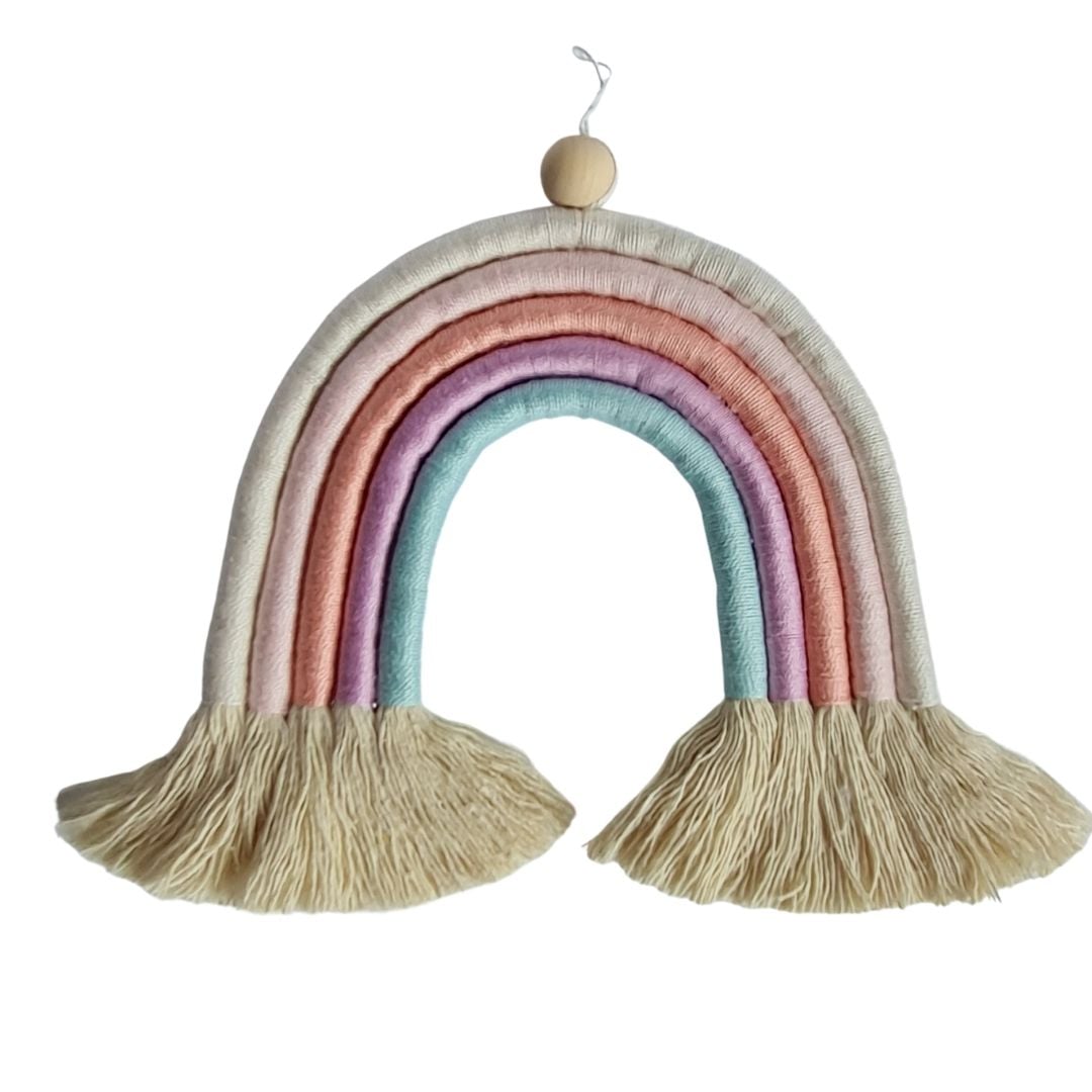 Decoratiune Curcubeu pastelO decoratiune delicata in culori pastel potrivita pentru camera bebelusului. Un dar special de Baby shower sau la prima vizita si de ce nu, oricand vrei sa faci un cadou special lucrat manual cu migala, din materiale de calitate, alese atent.Se poate agata pe perete sau poate decora un alt obiect din camera micutului.Curcubeul are o simbolistica vasta si poate semnifica speranta, viata, armonie, unitate, fertilitate.Caracteristici: