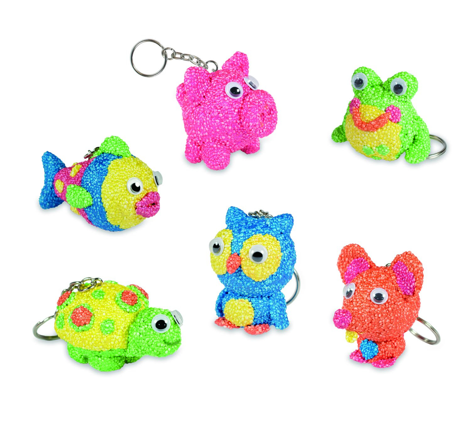 cu ajutorul spumei de modelat colorata copiii vor putea sa confectioneze brelocuri in forma de animalute
