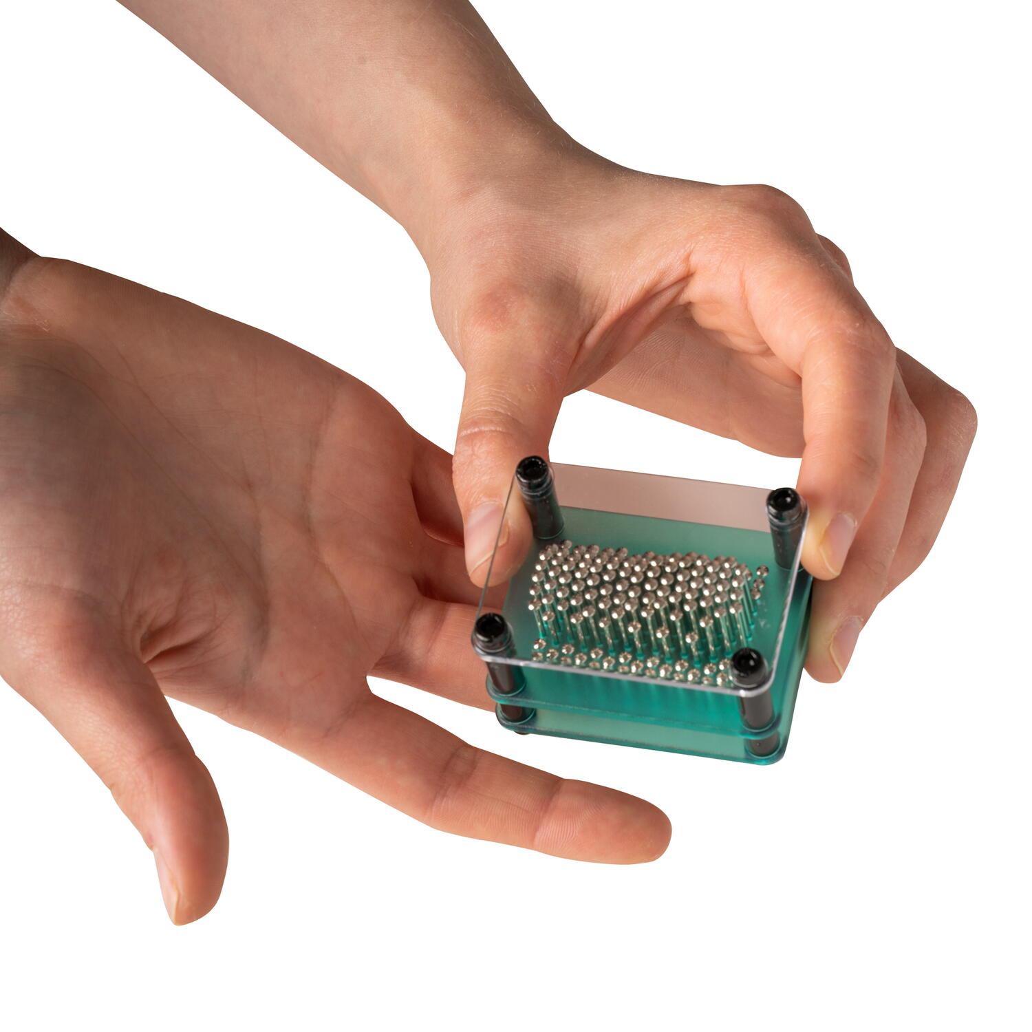 Jocul de Pin Art este un mod inedit de a stimula imaginatia copilului dumneavostra. Prin apasarea celor 700 de pini cu orice obiect, se creeaza o imagine 3D a amprentei obiectului.