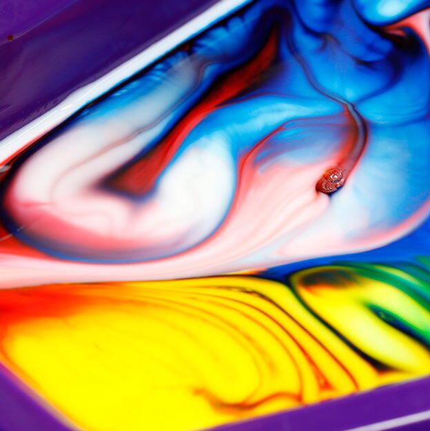 Animatie in Lapte – Detergentul de vase contine surfactanti care distrug tensiunea superficiala a laptelui, determinand pigmentul sa se imprastie si sa creeze modele spectaculoase.