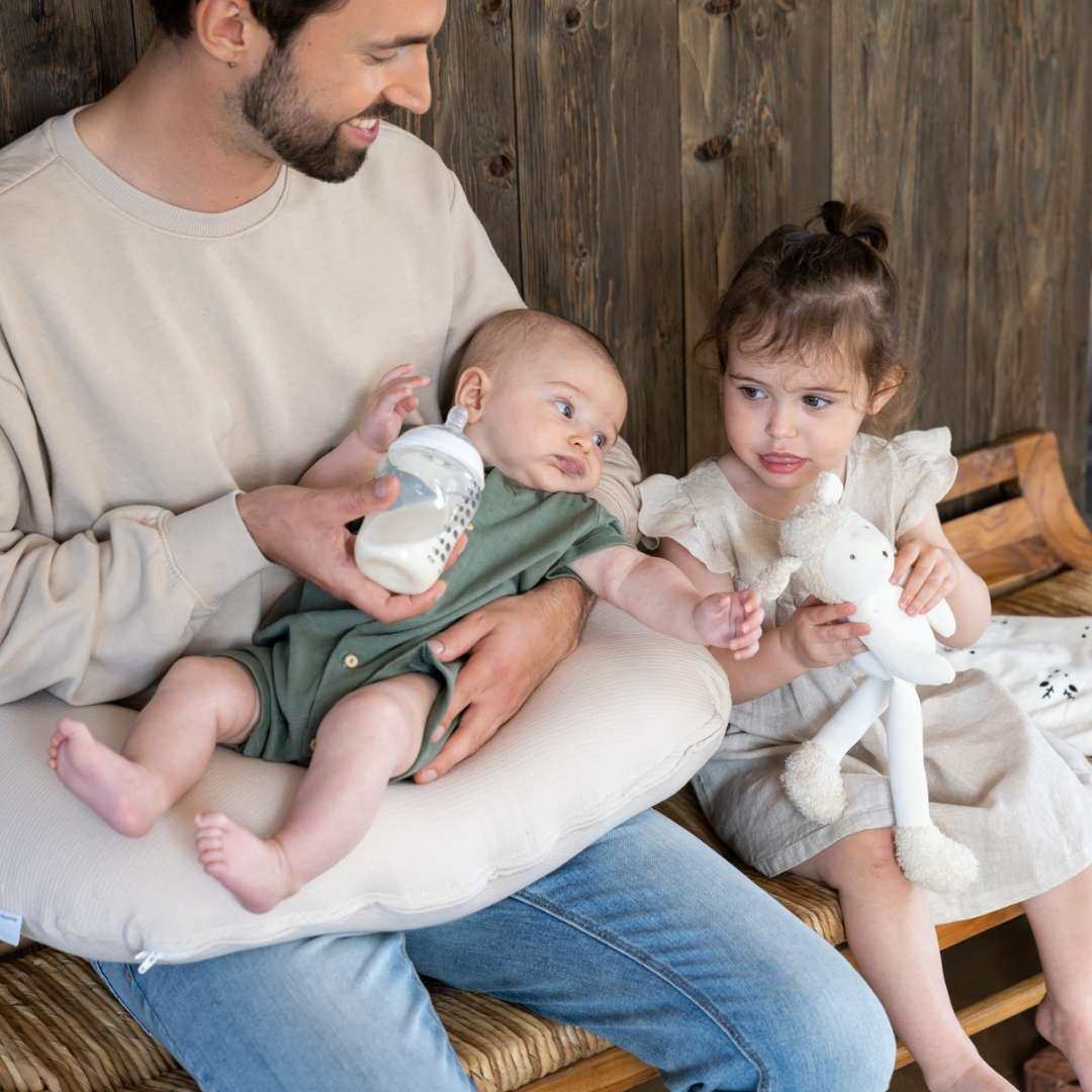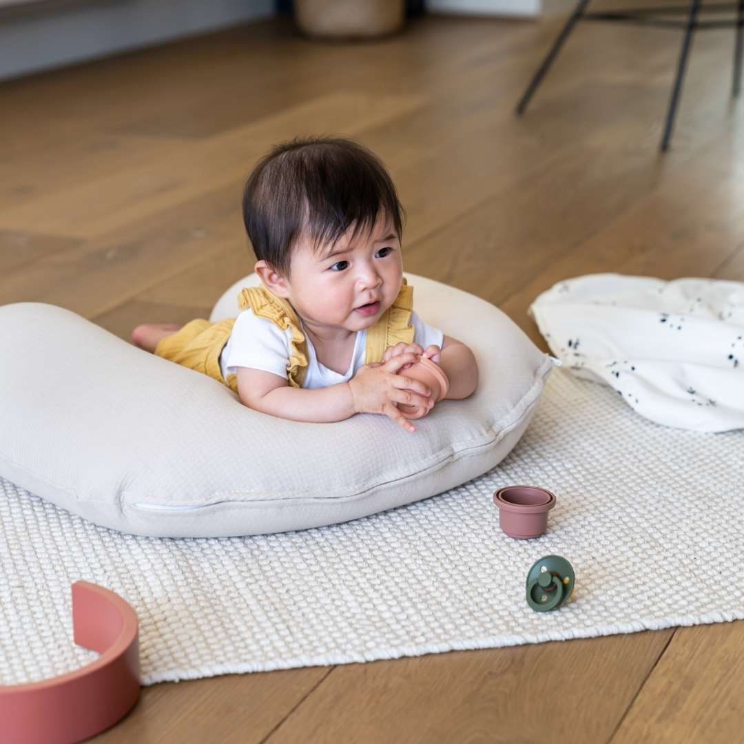 Doomoo Softy este o perna multifunctionala, oferind sprijin in timpul alaptarii la san sau cu biberonul, transformandu-se apoi intr-o perna confortabila pentru ca bebelusul sa se joace si sa se odihneasca.