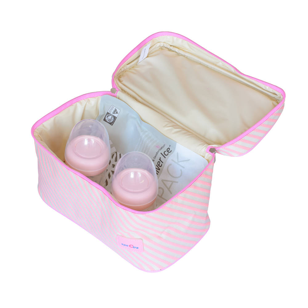 interiorul gentii este bine izolat, iar punga cu gheata va permite depozitarea in siguranta a laptelui timp de aproximativ 24 de ore