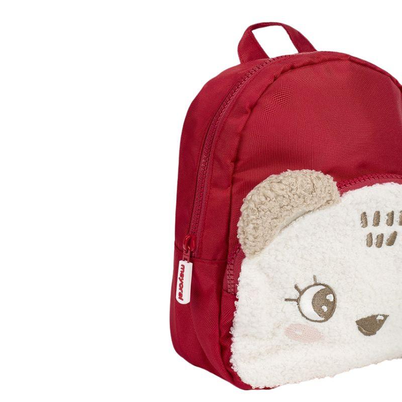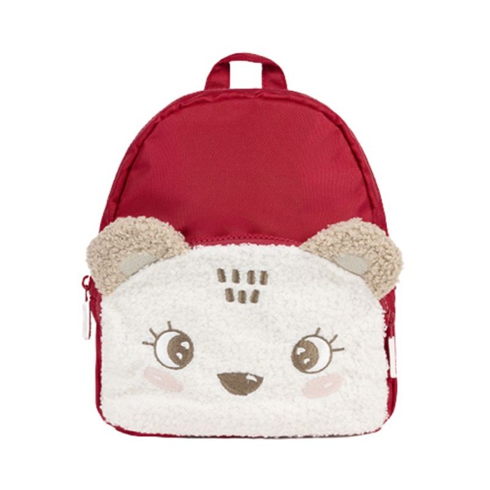 Ghiozdan original si practic pentru copii. Un produs atractiv si distractiv pentru a completa orice tinuta.Ghiozdanul are buzunar si urechiuse aplicate, detaliile fetei brodate. Eticheta interioara pentru a nota numeme copilului sau alte detalii.Inchidere cu fermoar si bretele reglabile.Culoare: rosu/bej Dimensiuni: 24 x 20 cm.