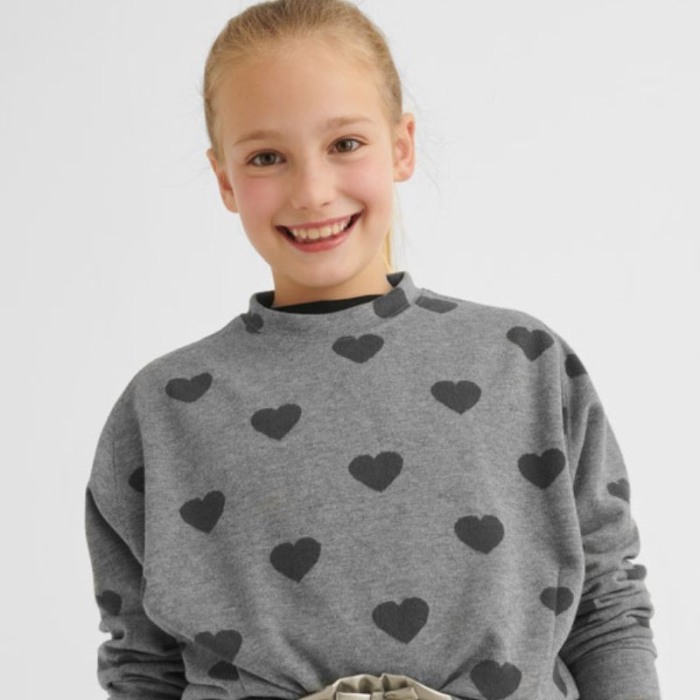 Bluza sport cu inimioareBluza cu maneca lunga are mansete elastice si guler rotund. Design: doua pense la bazaMaterial: 84% Poliester 11% Viscoză 5% Elastan
