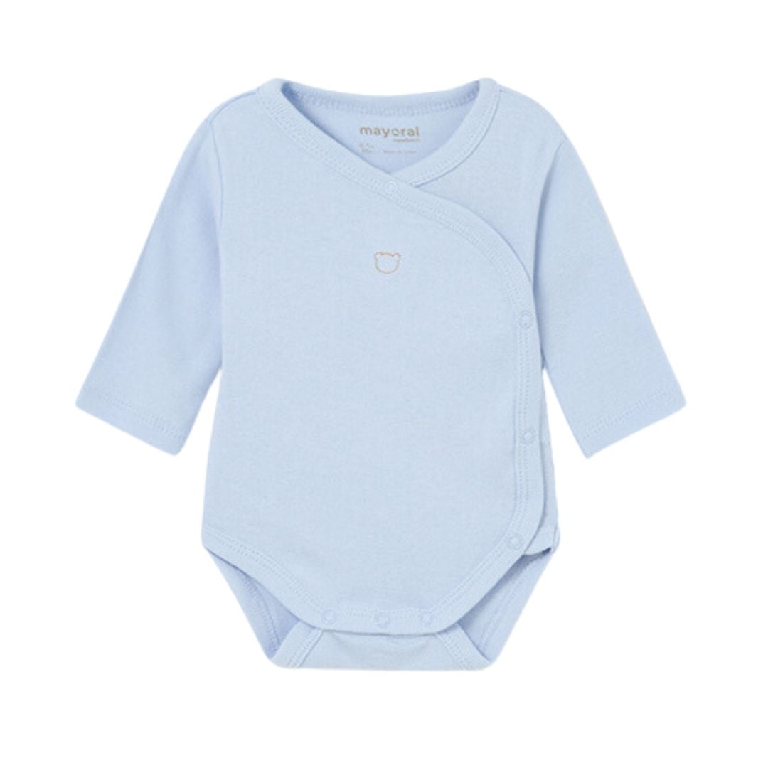 Body Better Cotton BLEU nou-nascutBody-ul cu maneca lunga are guler in V, iar inchiderea se face cu doua capse pe partea dreapta si cu 3 capse, in partea de jos.Tesatura este rezistenta la spalat.Se poate folosi in toate anotimpurile anului.Material: 100% bumbacCuloare: bleuIntretinere: