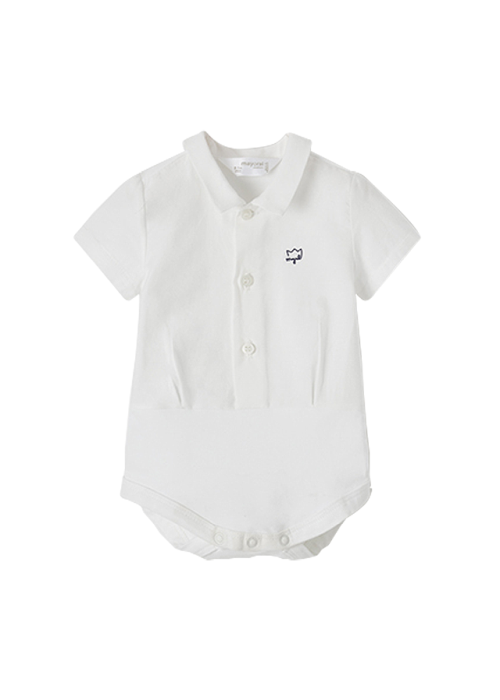 Body camasa cu maneca scurta ECOFRIENDS - BejBody-ul camasa are maneci scurte si un guler rotund tip camasa.Inchiderea se face cu 3 nasturi pe fata si 3 capse in partea de jos, pentru o imbracare usoara.Material: 98% bumbac / 2% elastanCuloare: bejIntretinere: