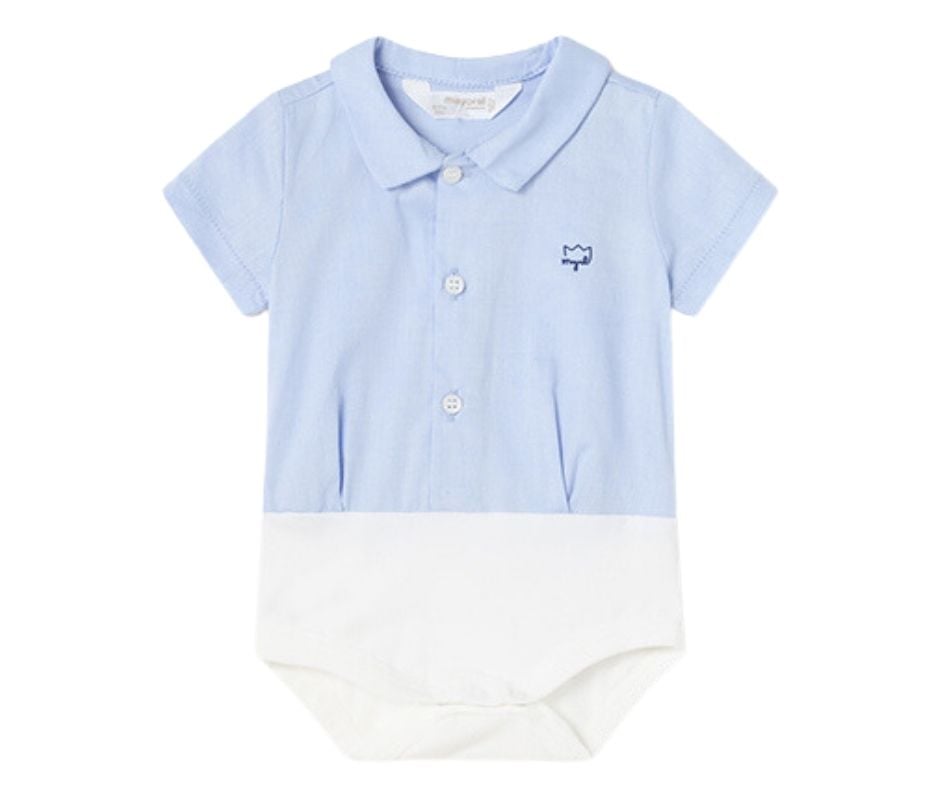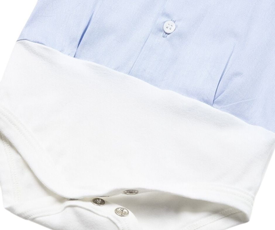 Body camasa cu maneca scurta bleuBody-ul camasa are maneci scurte si un guler rotund tip camasa.Inchiderea se face cu 3 nasturi pe fata si 3 capse in partea de jos, pentru o imbracare usoara.Material: 98% bumbac / 2% elastanCuloare: bleu/albIntretinere: