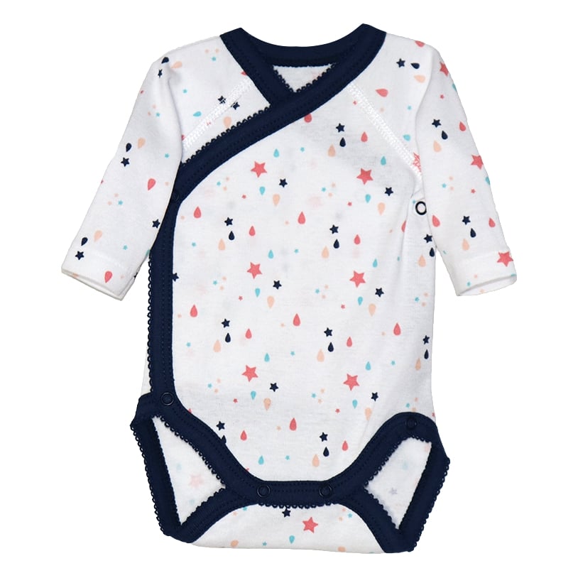 Body cu maneca lunga - Stele rosii si albastreBody-ul se prinde cu cate doua capse pe fiecare partea (dreapta/stanga), iar in partea de jos cu alte trei capse.Materialul este de buna calitate, rezistent la spalat, iar culorile se pastreaza in timp.