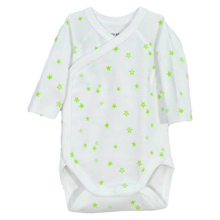 Body cu maneca lunga - Stele verziBody-ul se prinde cu cate doua capse pe fiecare partea (dreapta/stanga), iar in partea de jos cu alte trei capse.Materialul este de buna calitate, rezistent la spalat, iar culorile se pastreaza in timp.