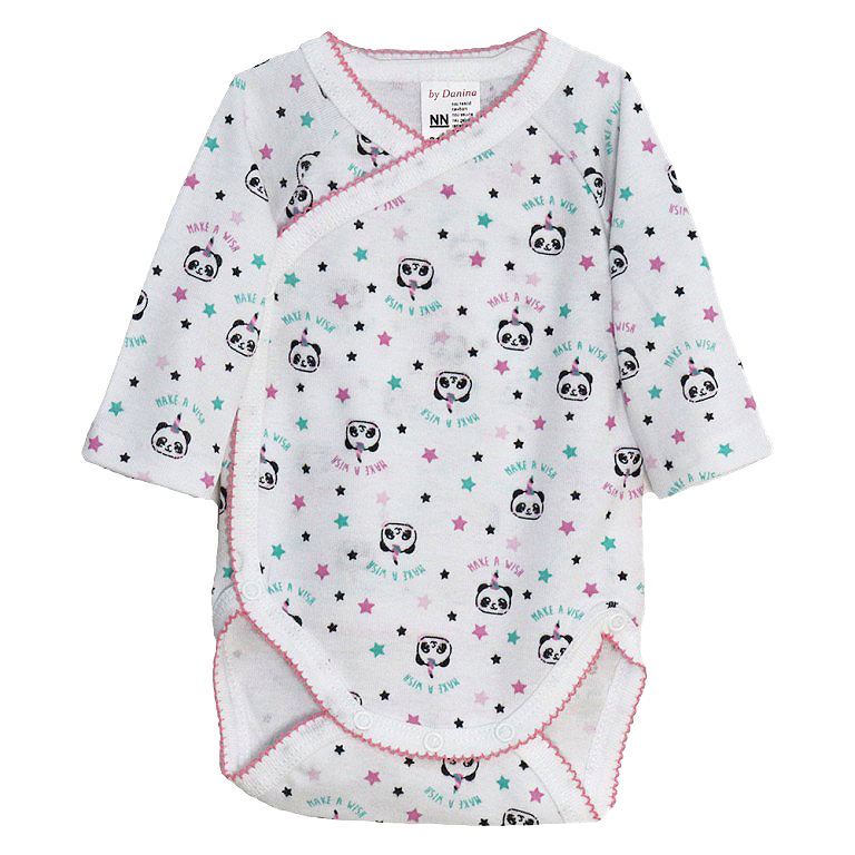 Body cu maneca lunga - Urs PandaBody-ul se prinde cu cate doua capse pe fiecare partea (dreapta/stanga), iar in partea de jos cu alte trei capse.Materialul este de buna calitate, rezistent la spalat, iar culorile se pastreaza in timp.